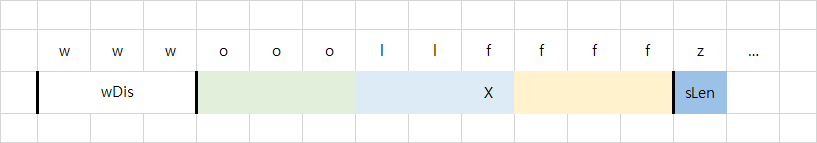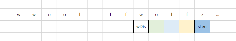 w가 아닌 문자가 등장하면, 시작 지점으로부터 wDis 만큼의 거리로 탐색 범위를 나누어 o, l, f가 필요한 만큼 올바른 위치에 있는지 검증한다.