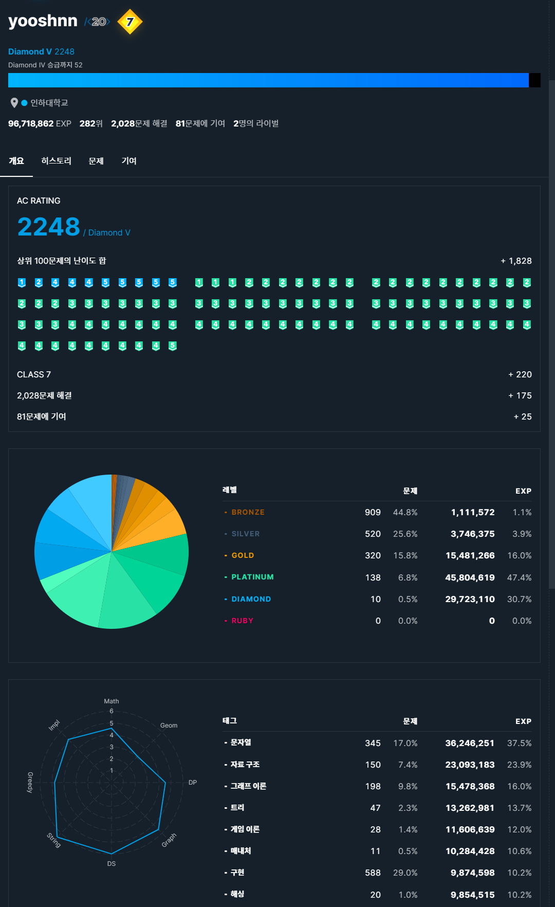 컨텐츠(문제)가 엄청나게 많아 게임처럼 끊기 어려웠다. 당분간은 개인적으로 선호하는 PO, USACO 등의 기출이나 도움이 될 만한 문제들 위주로 덜 열심히 할 것 같다.