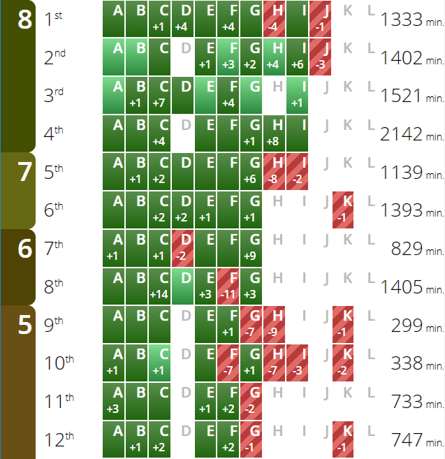 최종 결정된 수상권의 문제 해결 수 분포는 8솔 4명, 7솔 2명, 6솔 2명, 5솔 4명이다.