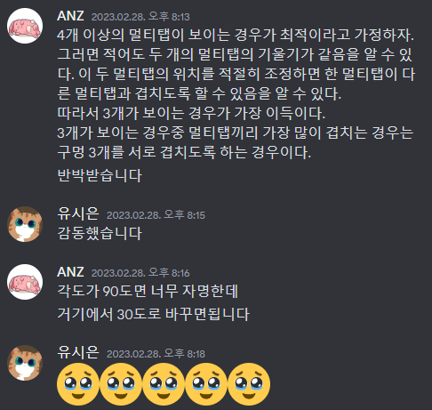 운이 좋게도 올해 3개의 멀티탭이 보이는 경우의 최적해를 증명했고, ANZ님의 막타로 문제가 완성되었다.