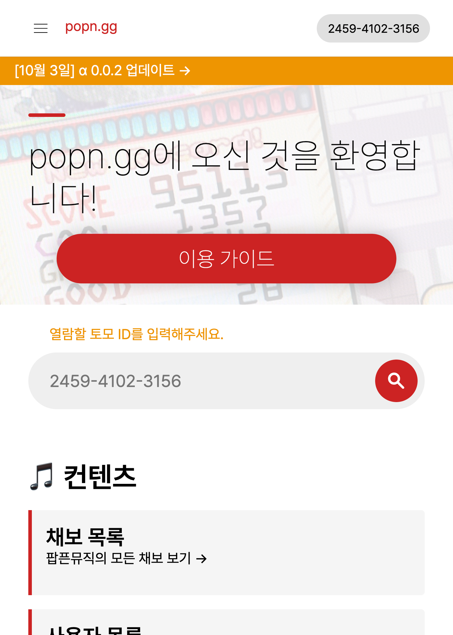 popn.gg는 코나미사의 아케이드 게임 팝픈뮤직의 플레이 기록을 수집 · 가공해 열람할 수 있는 서비스이다. 팝픈뮤직은 1999년 출시된 건반형 리듬게임으로, 음악에 맞추어 버튼을 누르는 간단한 방식의 게임이다. 2023년 기준 출시 이후 25년이 지난 지금까지도 많은 사랑을 받고 있는 장수 게임(?)이라 할 수 있겠다.